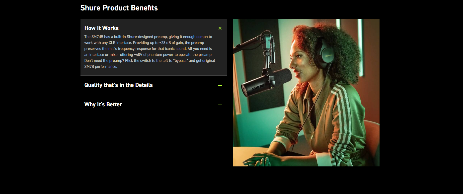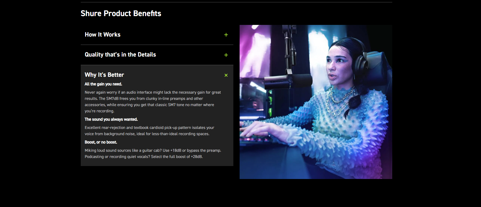 Designed for creators—podcasters, streamers, musicians and vocalists—the SM7dB delivers broadcast-quality results with less gear and fuss. Whether you’re setting up at home or in a studio, its simplified high-output design means you can connect straight into standard interfaces without needing an external booster or rack.