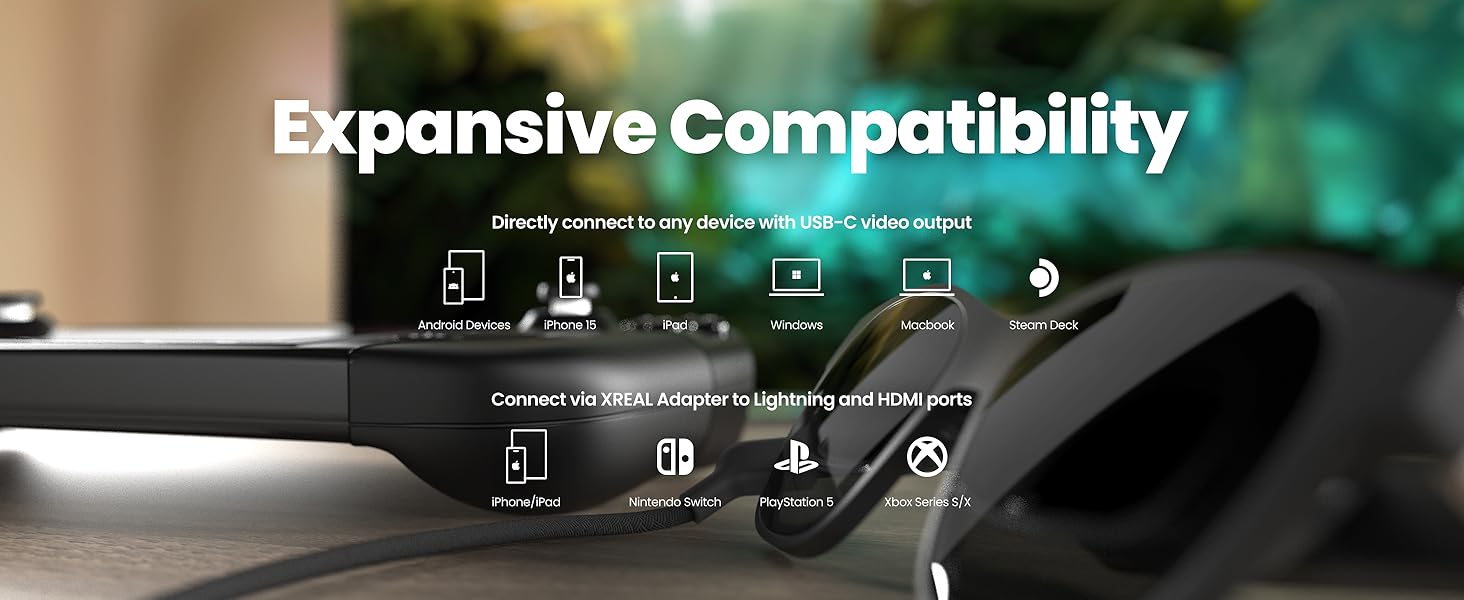 XREAL’s precision-engineered lenses allow you to stay aware of your surroundings while enjoying your content. Need more focus? Pair with the XREAL Beam or an optional shade for a more immersive environment.
