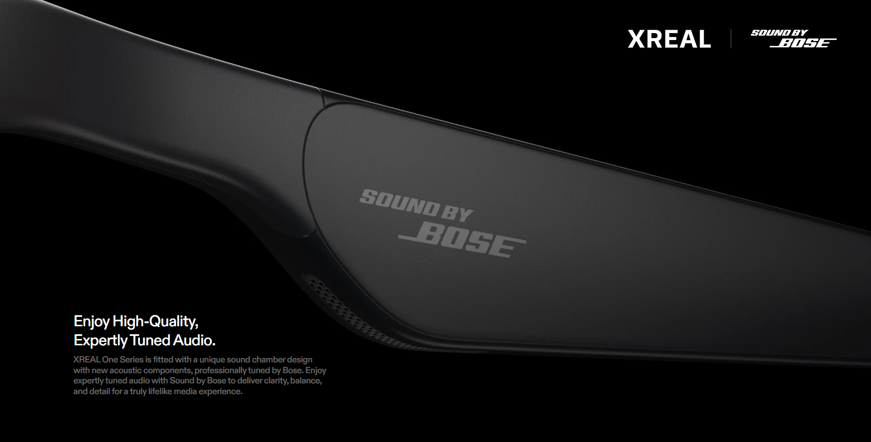 Powered by the custom-designed XREAL X1 chip, the One Pro ensures precise image processing and minimal distortion, allowing for true-to-life spatial computing. The glasses include premium Bose-tuned speakers integrated directly into the frame, offering rich, immersive audio without the need for headphones.